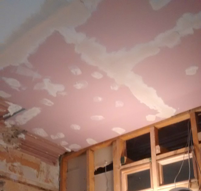 A quick progress note on this job in south London which has involved reboarding a ceiling with fireproof plasterboard .. followed by taping and filling all joints.